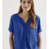 - Rövid ujjú, kerek nyakkivágással, gombokkal záródó hasítékkal.