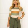 Menő női póló a nyakánál színes zsinóros díszítéssel Nyári trendi darab, A kerek nyak enyhe V kivágással kiemeli a stílust Méretek: L váll: 44, mell: 116, hossz válltól: 71cm