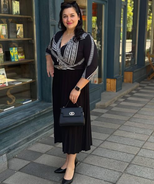 - Fekete színű, bézs mintás Frank Lyman ruha.