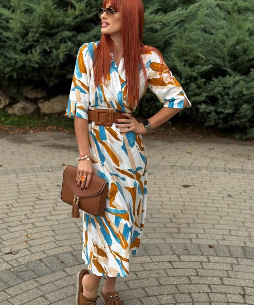 Címkék: 30%, galléros, kényelmes, midi, mintás, női ruha, nyár, rövid ujjú, V kivágás