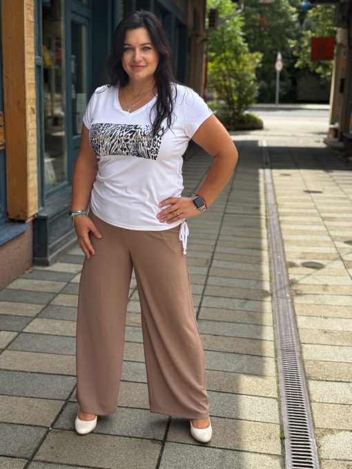 Livello mogyoró derékban gumis bőszárú nadrág