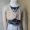 Egyszínű lány boleró gombokkal az Mikka márkától fényes szegéllyel. A boleró megfelelő felső viseletként.