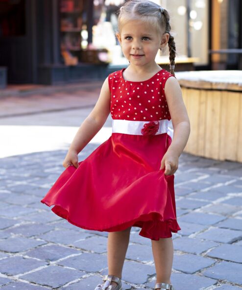 - Mesésen áll a lányokon a térd alá érő, alsószoknyával ellátott ruha.