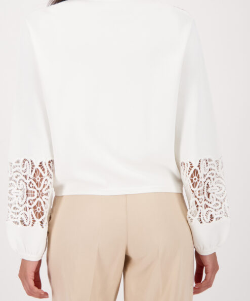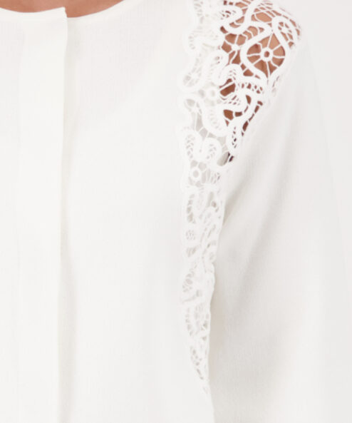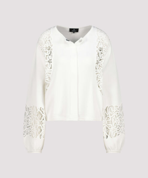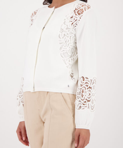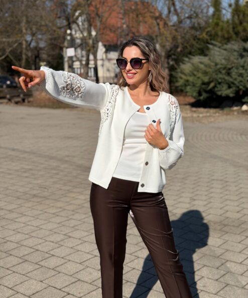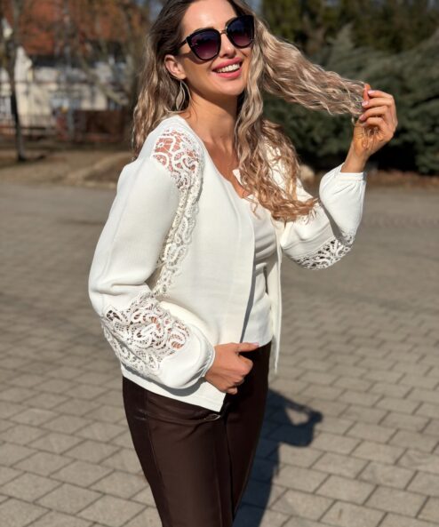 Elegáns kardigán lenge viszkózból, csipkebetétekkel és fodros ujjszegélyekkel – modern és stílusos bármilyen alkalomra.