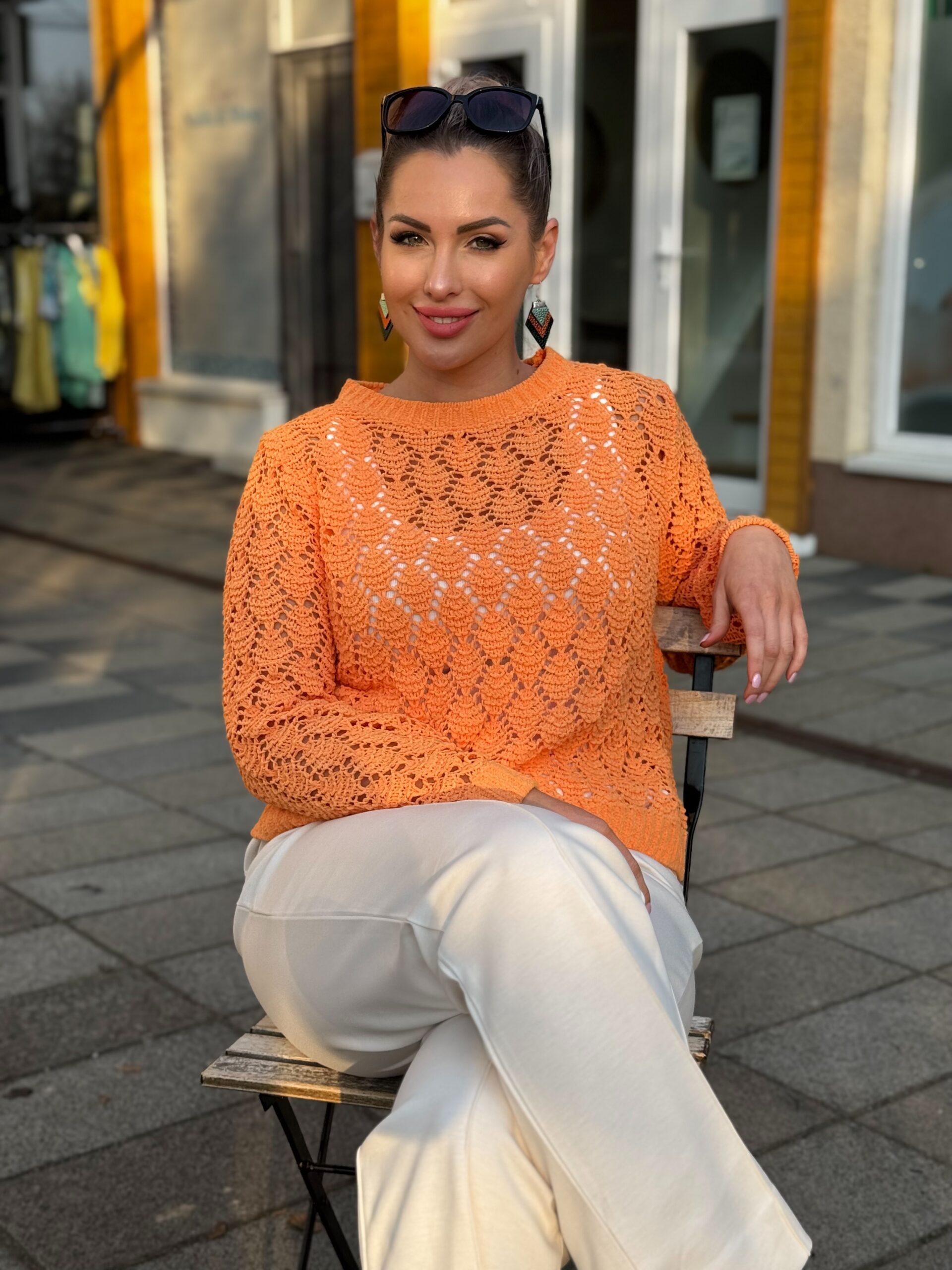 Tapasztald meg az Ajour kötött pulóvert puha textúrájával, kerek nyakkivágásával és bordázott mandzsettájával az időtlen, elegáns kényelem érdekében.