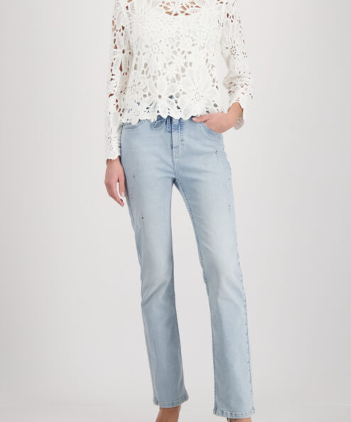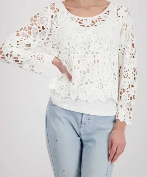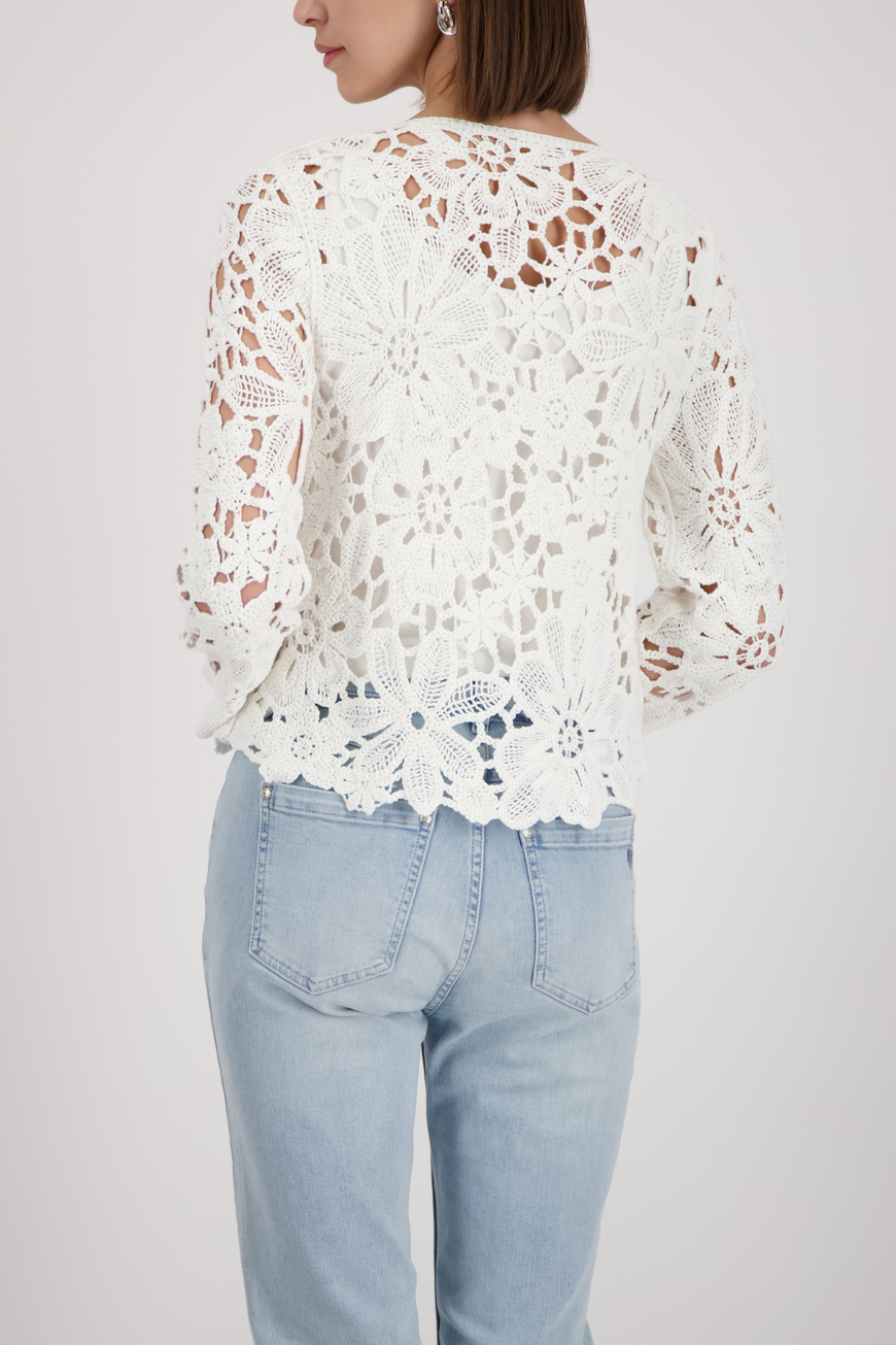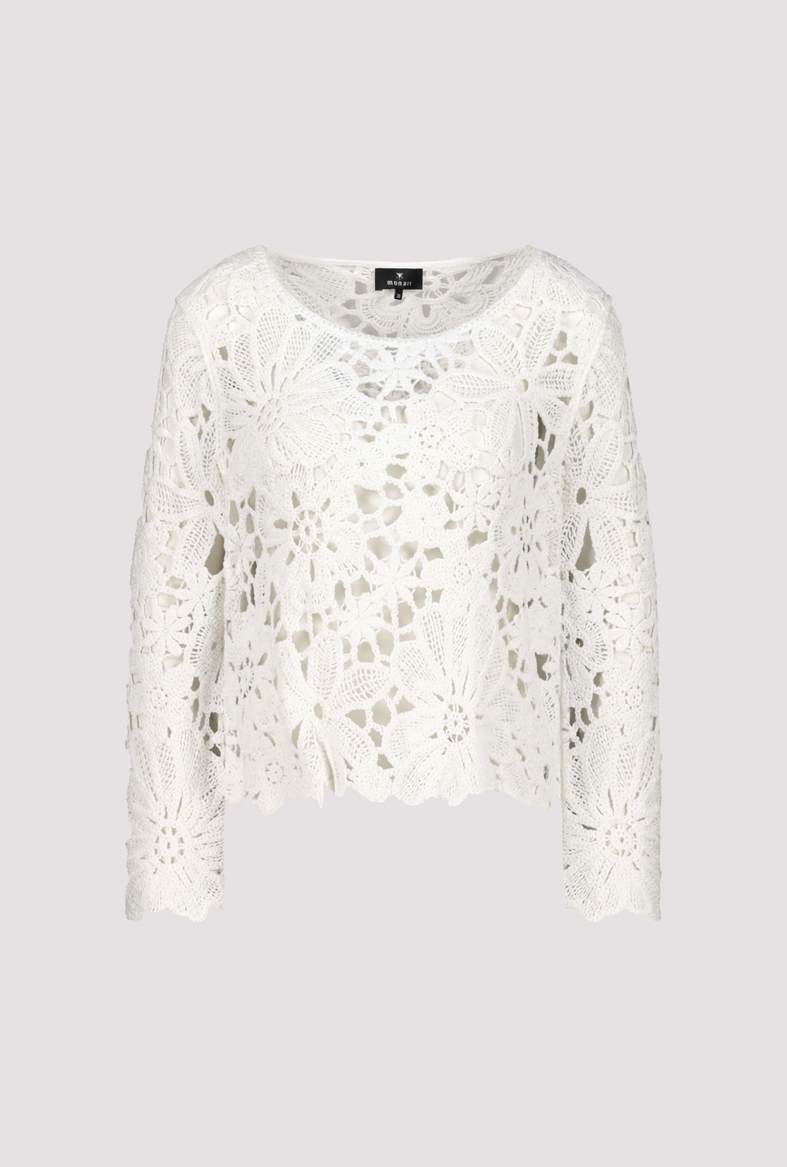 Monari fehér pulóver horgolt mintával