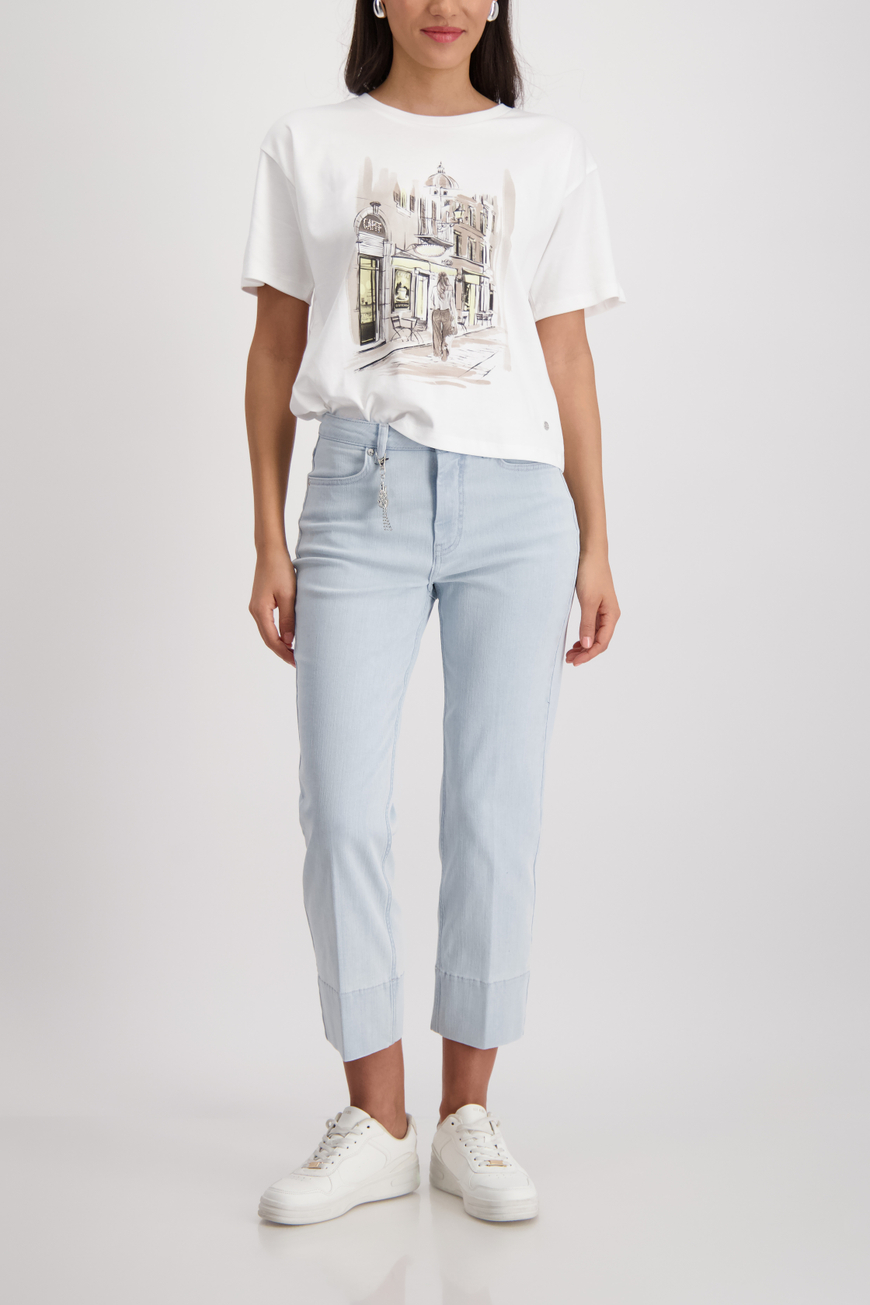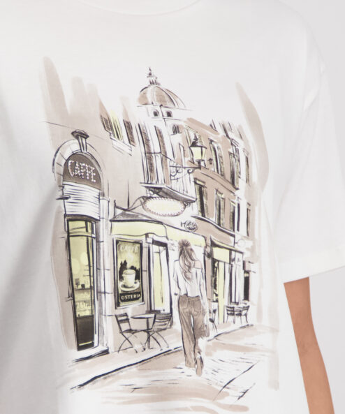 Fedezd fel stílusos, 100% pamutból készült pólónkat, puha textúrával és modern városi mintával.