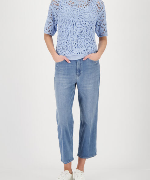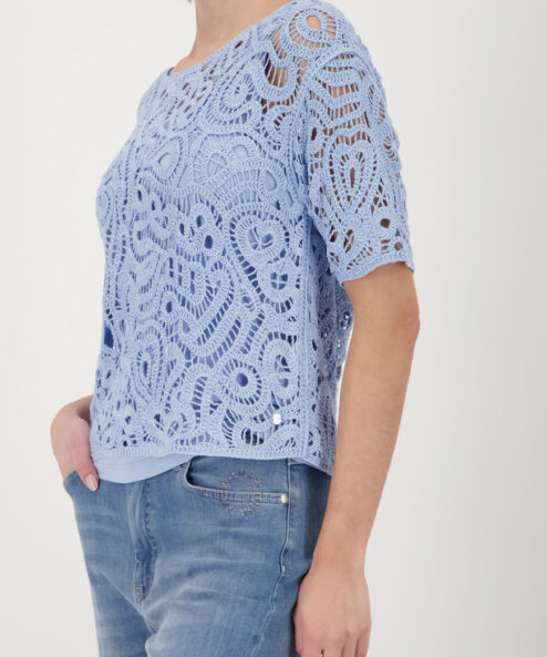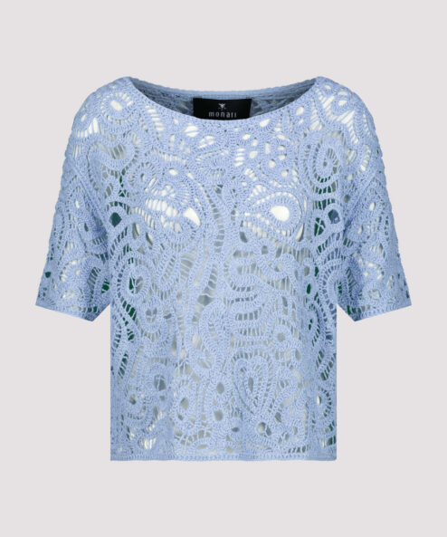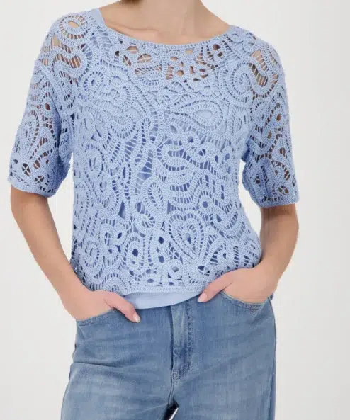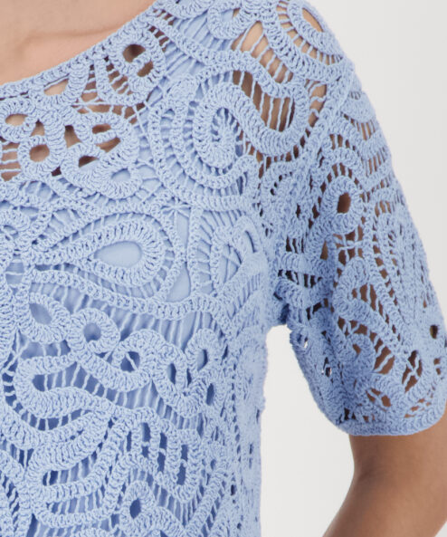 Elegáns, 100% viszkóz kötött pulóver divatos Cornelly mintával, kerek nyakkal és rövid ujjakkal. Ideális a stílustudatos nők számára.