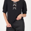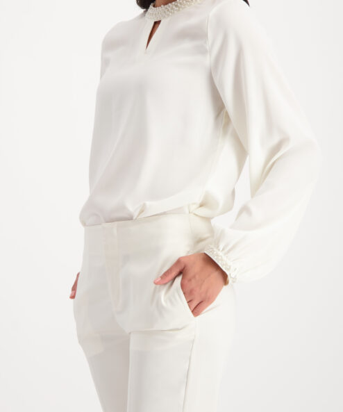 - Dekoratív részletek a nyakkivágásnál és a mandzsettáknál