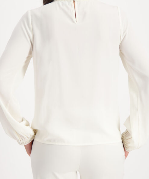 - Georgette Stílusos, enyhén átlátszó anyagból készült, dekoratív részletekkel és fodros mandzsettával ellátott zsorzsett blúz – a modern megjelenés elengedhetetlen darabja. szövet