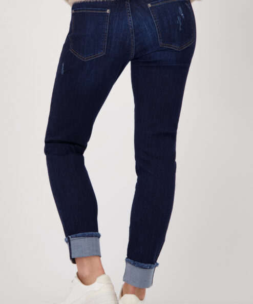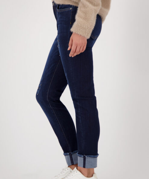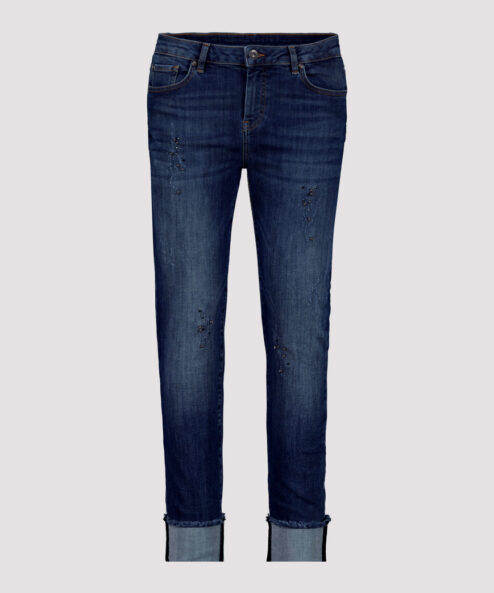 Ezek a stílusos, kopottas farmernadrágok kiváló minőségű pamutból készültek, rugalmas anyagot és díszes gyöngyöket ötvözve, így tökéletesek a magabiztos divatrajongók számára.