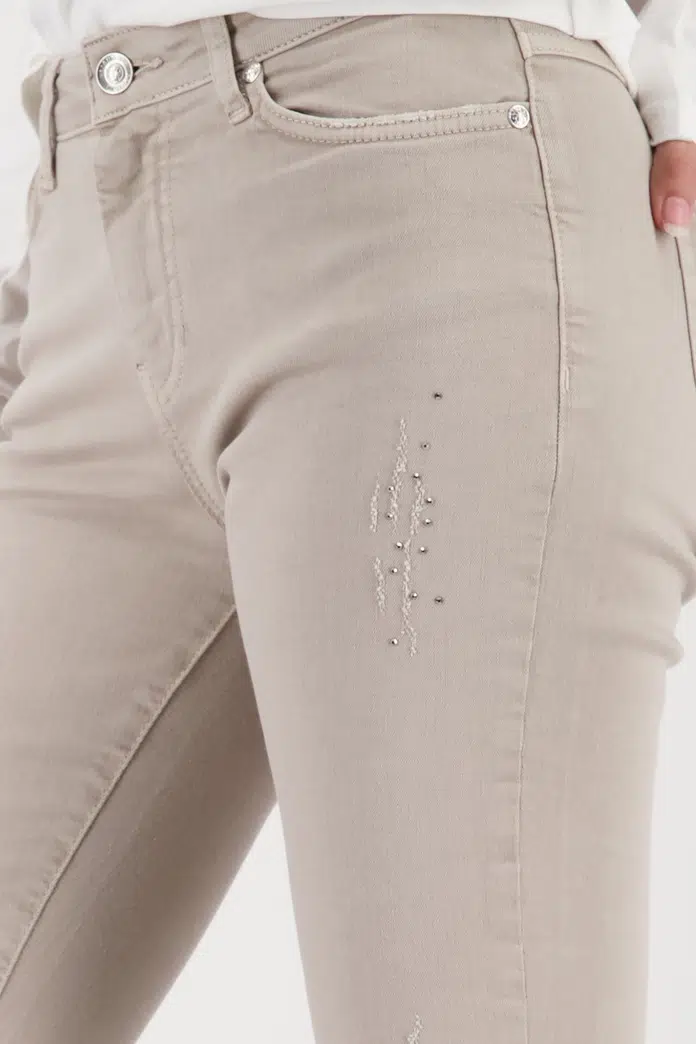 Dobd fel megjelenésedet ezzel a kiváló minőségű pamutból készült, strasszokkal és praktikus zsebekkel díszített, kopott farmerrel.