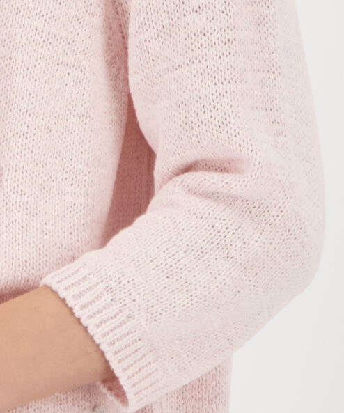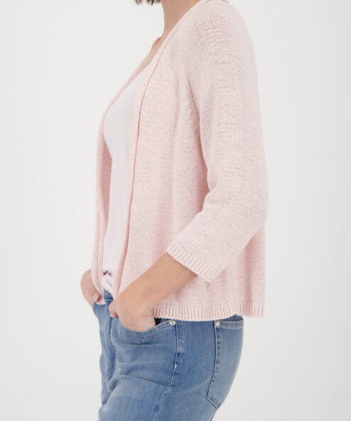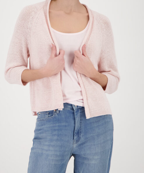 Ez a kardigán otthonos hangulatot kölcsönöz bármilyen öltözéknek. ¾ raglan ujjakkal és kapcsok nélkül.