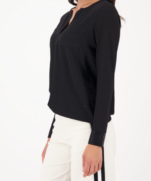 - Kerek nyakkivágás hasítékkal és strassz szegéllyel