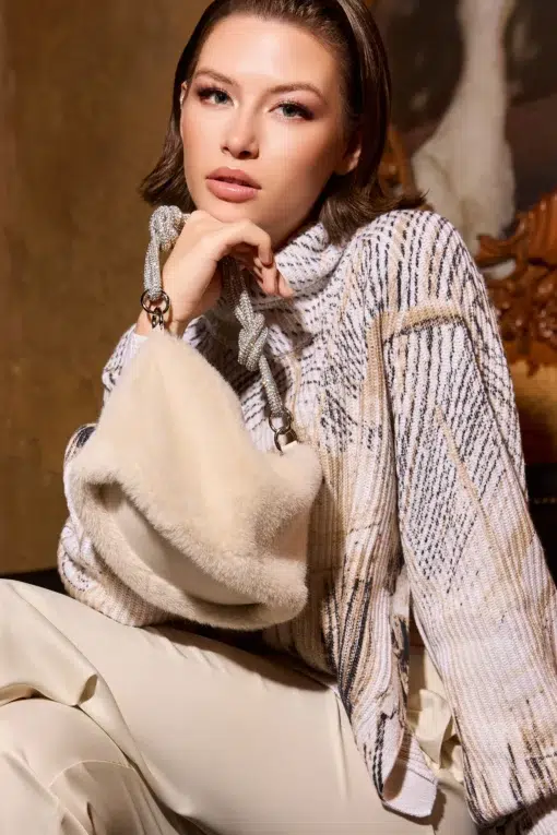 Elegáns műszőrme táska bolyhos textúrával, csillogó strasszokkal a fogantyún és praktikus patentgombos záródással – stílusos, kötelező darab!