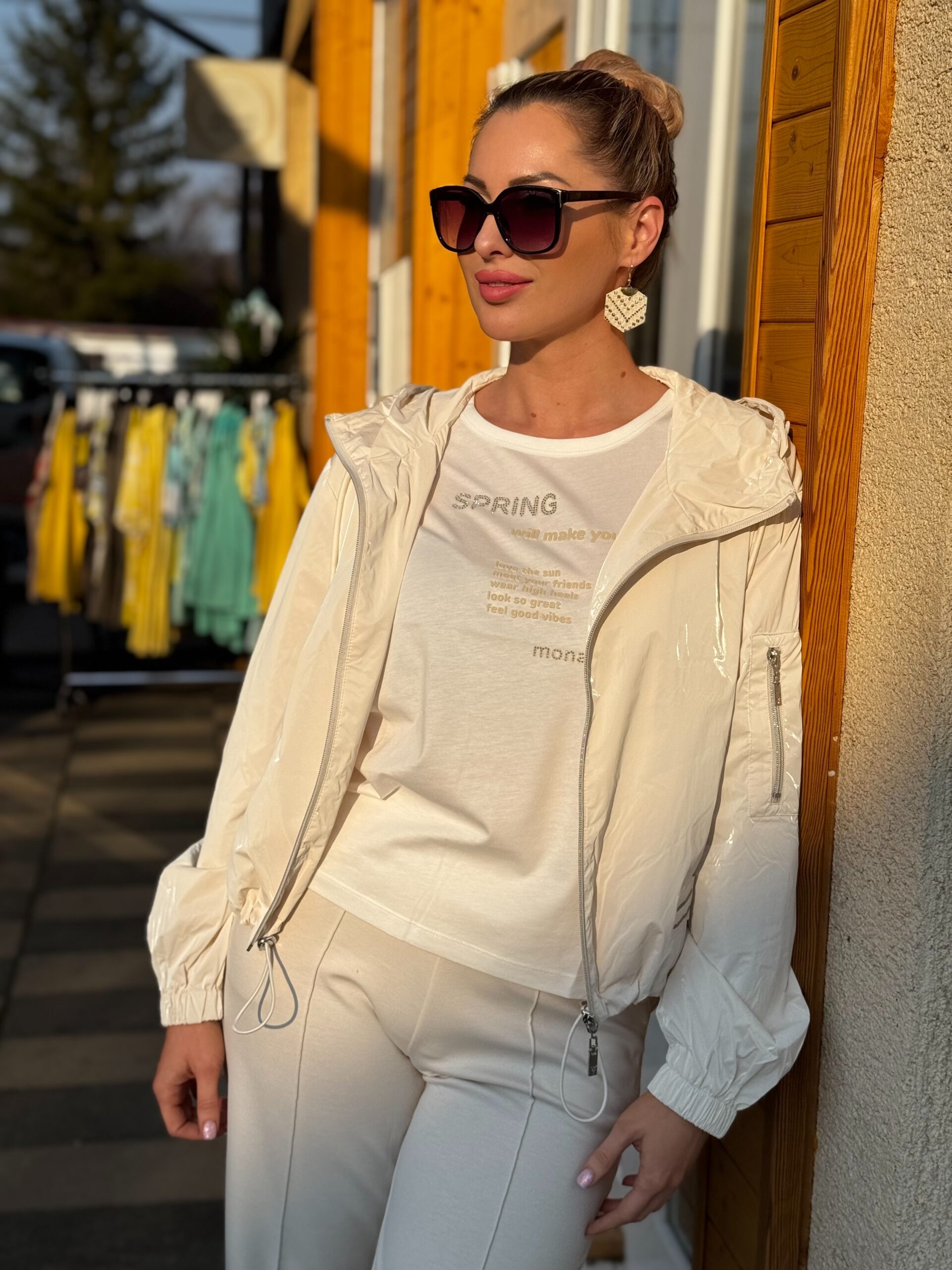 Stílusos átmeneti kabát kapucnival, praktikus cipzáras zsebekkel és rugalmas mandzsettával a modern kényelem érdekében.