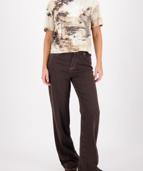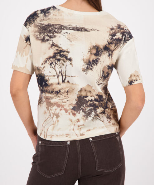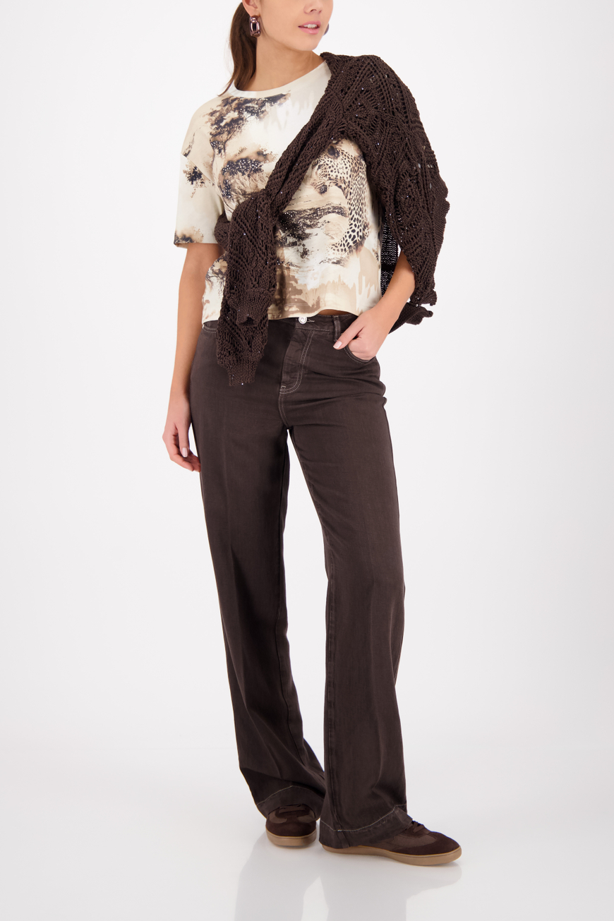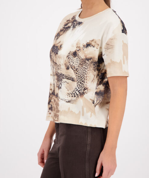 Ez a stílusos, 100% pamutból készült, puha textúrájú póló szavanna mintájával és csillogó strasszaival nyűgöz le.