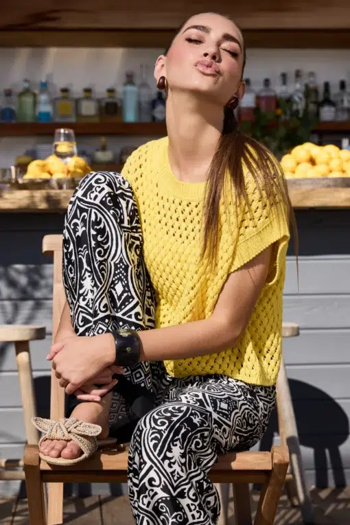 Monari Ujjatlan pulóver ajour mintával sárga