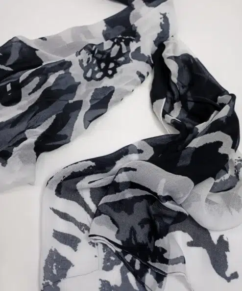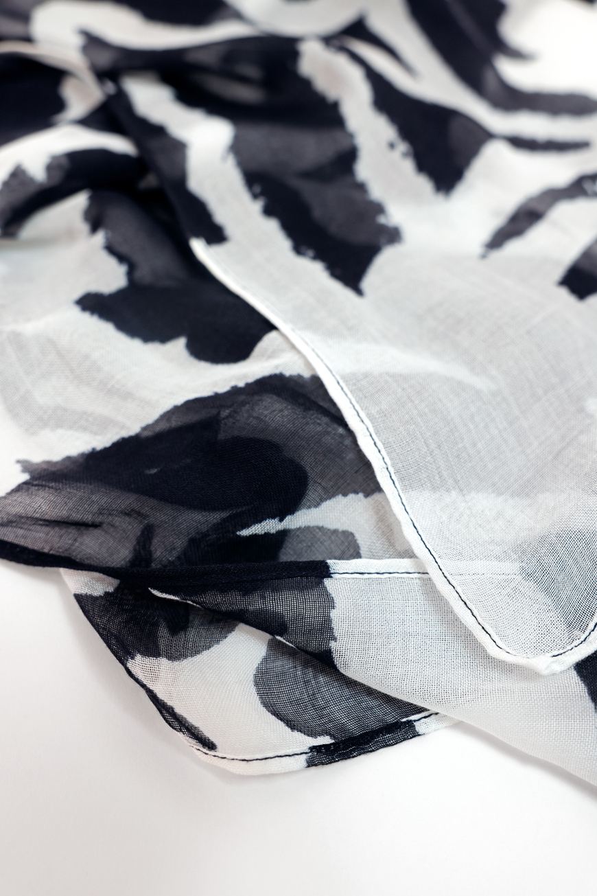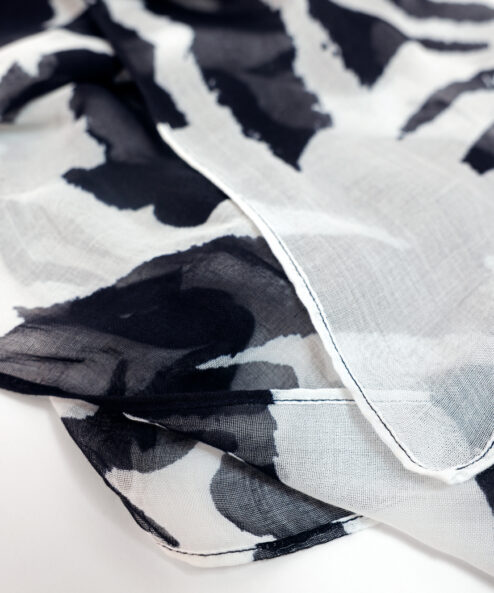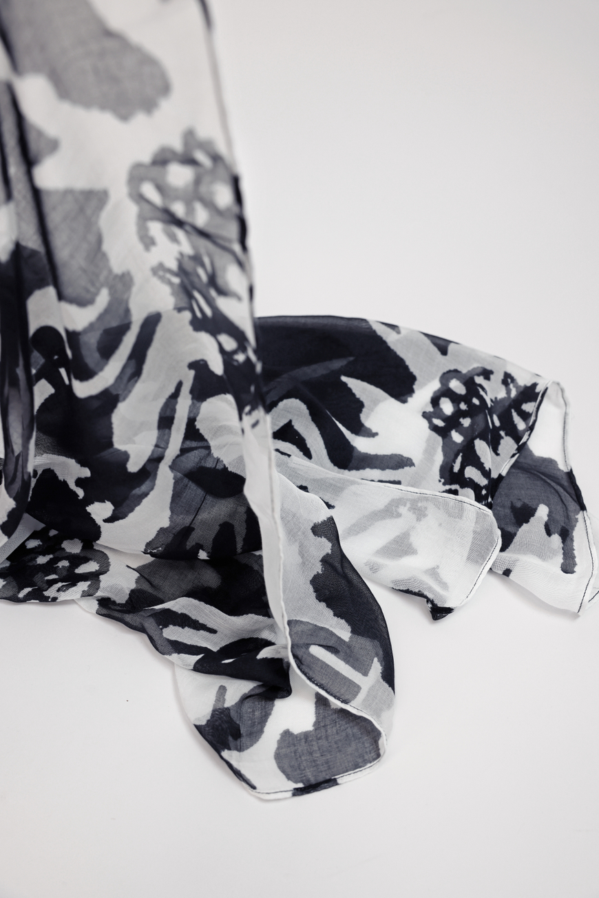 Ez a divatos, lenge viszkózból készült sál kifejező mintázatával lenyűgöző. A téglalap alakú forma sokoldalú stíluslehetőségeket kínál – akár lazán a nyak körül, fejpántként, akár dekoratív kiegészítőként viselhető. A puha anyag kellemesen könnyű tapintású, és minden öltözékhez különleges különlegességet ad.