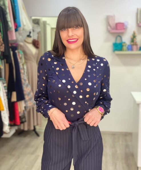 Kategóriák: arany, felső, hosszú ujjú, Mystic Day női ruhák, sötétkék, V kivágás