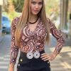 Kategóriák: 3/4-es ujjú, barna, bézs, felső, galléros, mintás, Mystic Day női ruhák, púder, V kivágás