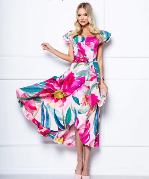 Kategóriák: Alkalmi ruha, egyrészes ruha, ekrü, galléros, mintás, Mystic Day női ruhák, Nyári ruhák, pink, púder, rövid ujjú, zöld