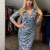 Kategóriák: 3/4-es ujjú, egyrészes ruha, ekrü, kék, mintás, Mystic Day női ruhák, sötétkék, V kivágás