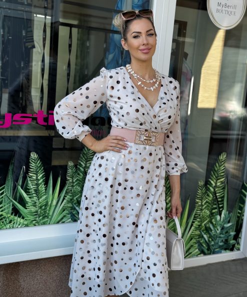 Kategóriák: 3/4-es ujjú, Alkalmi ruha, arany, átlapolós, bézs, egyrészes ruha, Esküvőkre, hosszú ujjú, mintás, Mystic Day női ruhák, V kivágás