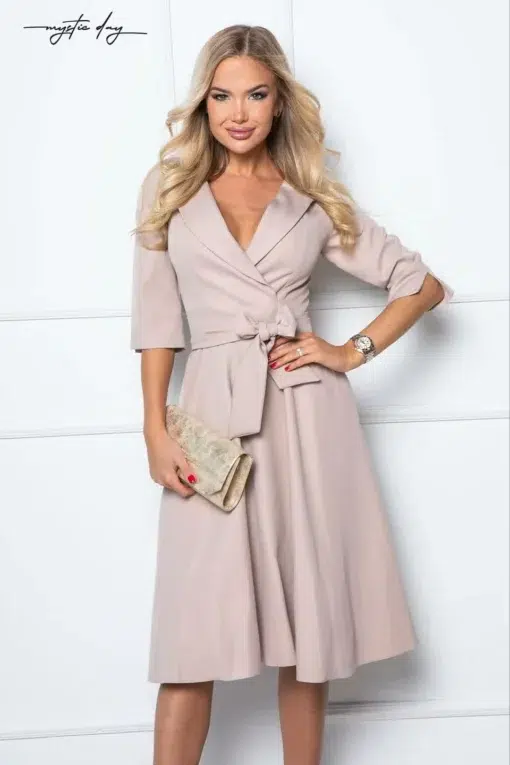 Kategóriák: 3/4-es ujjú, Alkalmi ruha, arany, bézs, egyrészes ruha, galléros, gombos, hosszú ujjú, Mystic Day női ruhák, nude, V kivágás