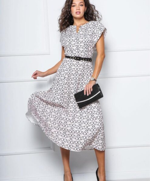 Kategóriák: Alkalmi ruha, bézs, egyrészes ruha, ekrü, fekete, mintás, Mystic Day női ruhák, rövid ujjú