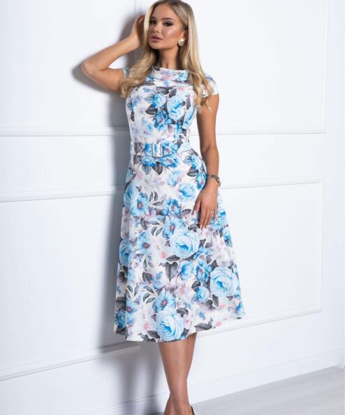 Kategóriák: Alkalmi ruha, egyrészes ruha, ekrü, galléros, kék, mintás, Mystic Day női ruhák, Nyári ruhák, rövid ujjú