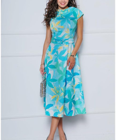 Kategóriák: Alkalmi ruha, egyrészes ruha, ekrü, galléros, kék, menta, mintás, Mystic Day női ruhák, Nyári ruhák, rövid ujjú, türkiz