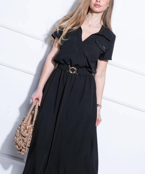 - V kivágott, mellnél zseb díszíti