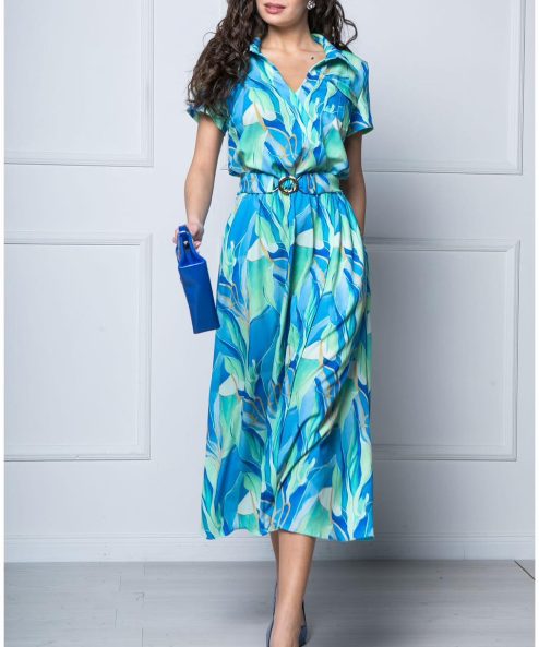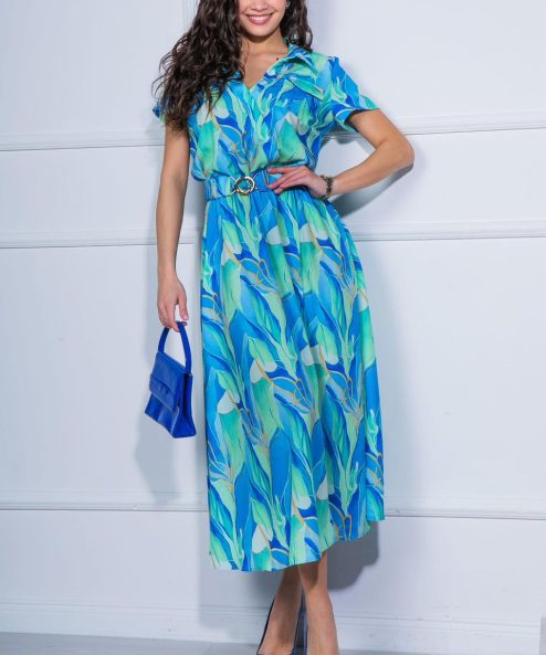 Kategóriák: Alkalmi ruha, átlapolós, egyrészes ruha, kék, királykék, lime, mintás, Mystic Day női ruhák, púder, rövid ujjú, V kivágás