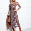 Kategóriák: Alkalmi ruha, barna, bézs, egyrészes ruha, fekete, hosszú ujjú, mintás, Mystic Day női ruhák, V kivágás