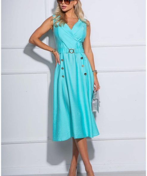 Kategóriák: Alkalmi ruha, átlapolós, egyrészes ruha, Mystic Day női ruhák, Nyári ruhák, türkiz, Ujjatlan, V kivágás