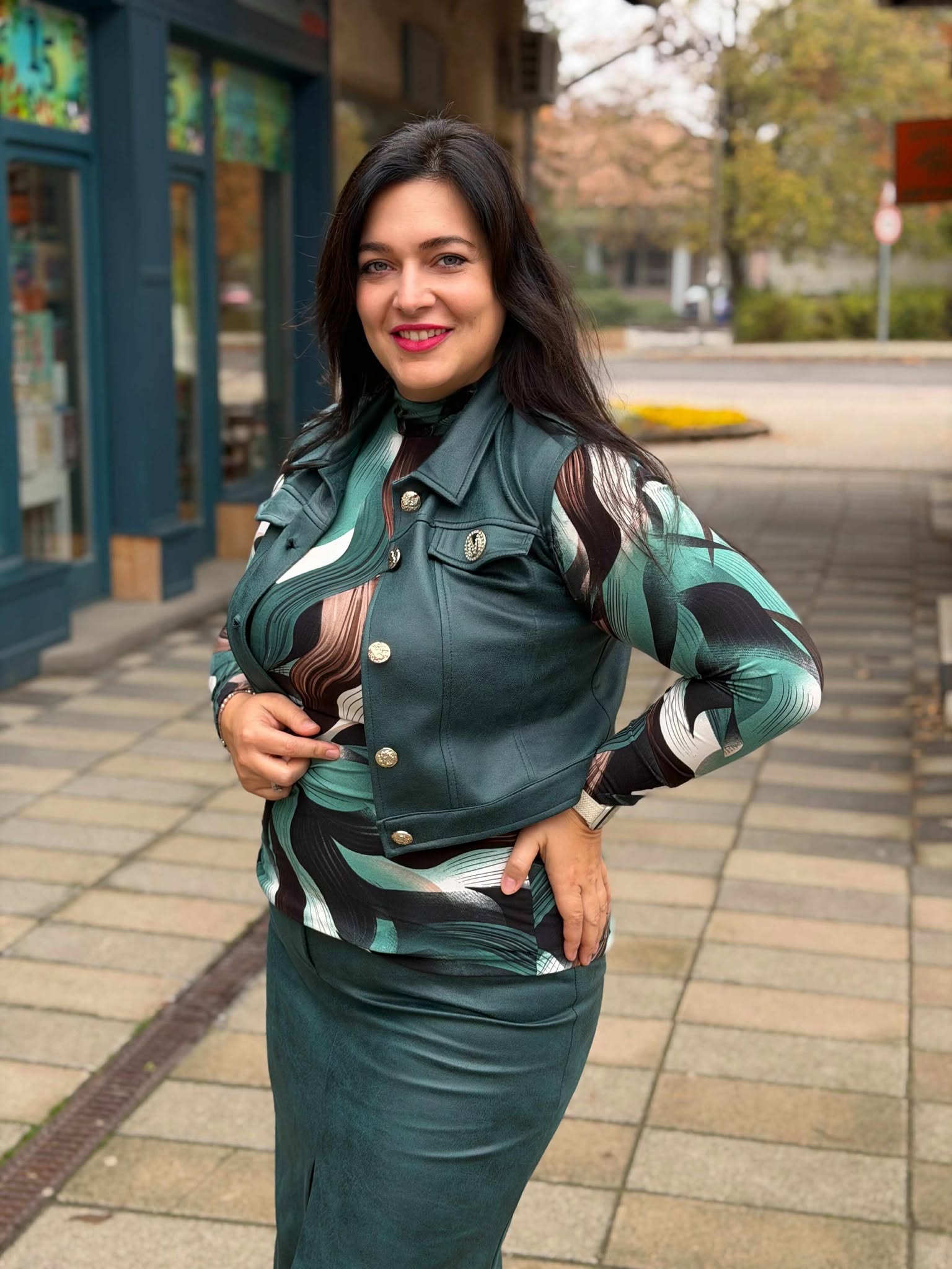 Az arany gombok és a velúr bőr hatású anyag nőies, luxus megjelenést biztosítanak – igazi must-have darab az őszi-téli szezonra.