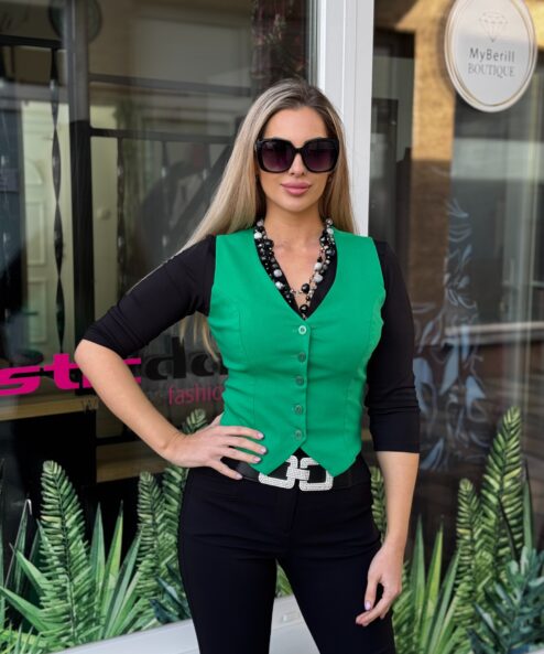 Kategóriák: Alkalmi ruha, felső, galléros, gombos, kabát, Mystic Day női ruhák, Ujjatlan, V kivágás, zöld