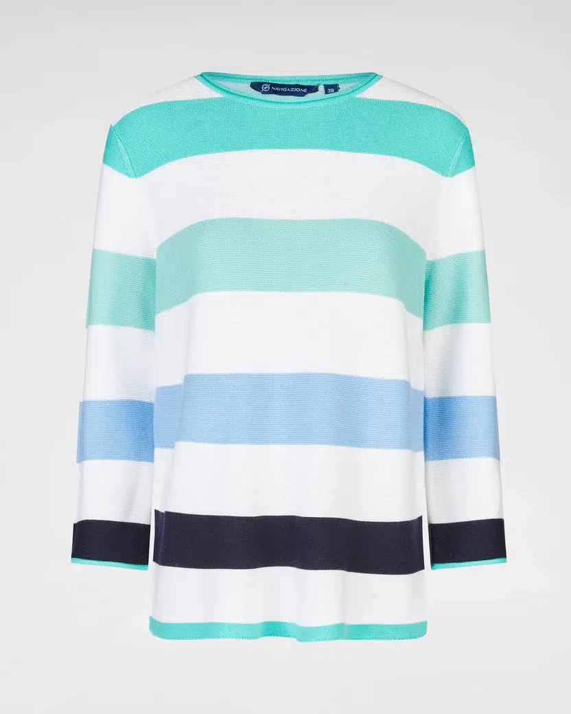 Navigazione 3/4 ujjú, átmeneti pulóver menta csíkokkal