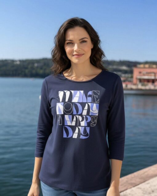 Navigazione sötétkék 3/4 ujjú pulóver – Modern, mutatós dizájn