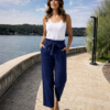 Navigazione 7/8-os rugalmas lenvászon nadrág övvel pink