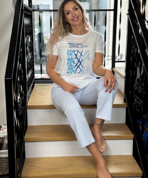 Navigazione csíkos kényelmi nadrág 7/8 hosszal