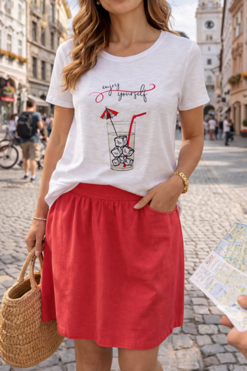 Navigazione fehér felső nyomott mintával