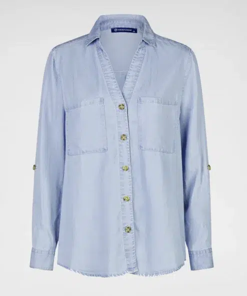 Ez a divatos, könnyű farmer stílusú női blúz időtlen dízájnnal és kivételes kényelmével nyűgöz le. A felhajtható ujjak különösen sokoldalúvá teszik – ideális mindennapi viseletre, irodába vagy szabadidőre. A lenge anyag, a teljes gombolás és a foltozott mellzsebek modern, laza megjelenést kölcsönöznek.