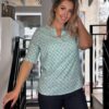 Navigazione nyári ruha rövidujjakkal és grafikus mintával (türkiz)