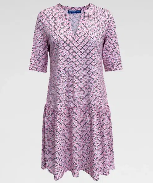 Navigazione nyári ruha rövidujjakkal és grafikus mintával