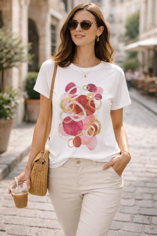 - fehér, elején nyomott pink/ rózsaszín mintával