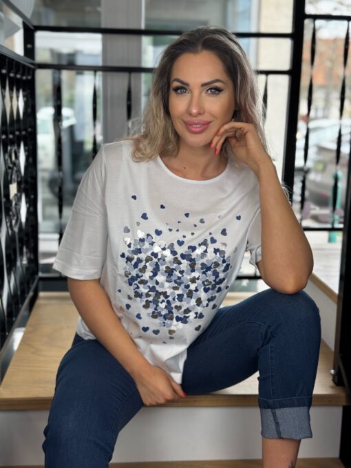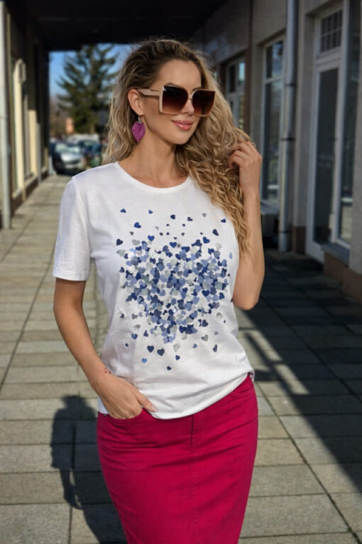 Navigazione szivecske mintás rövid ujjú felső fehér