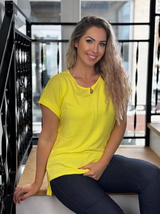 Stílusos, kényelmes és sokoldalú – elegáns női tunikánk kötelező darab a ruhatáradban. A praktikus félujjak kényelmes érzetet biztosítanak, és tökéletesen illeszkednek farmerhez, leggingshez vagy rövidnadrághoz. A kiváló minőségű anyag légiessé, könnyűvé és ideálissá teszi a tunikát a meleg napokra.