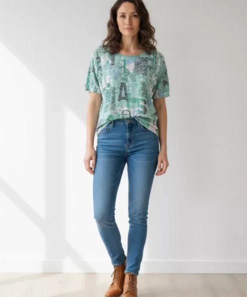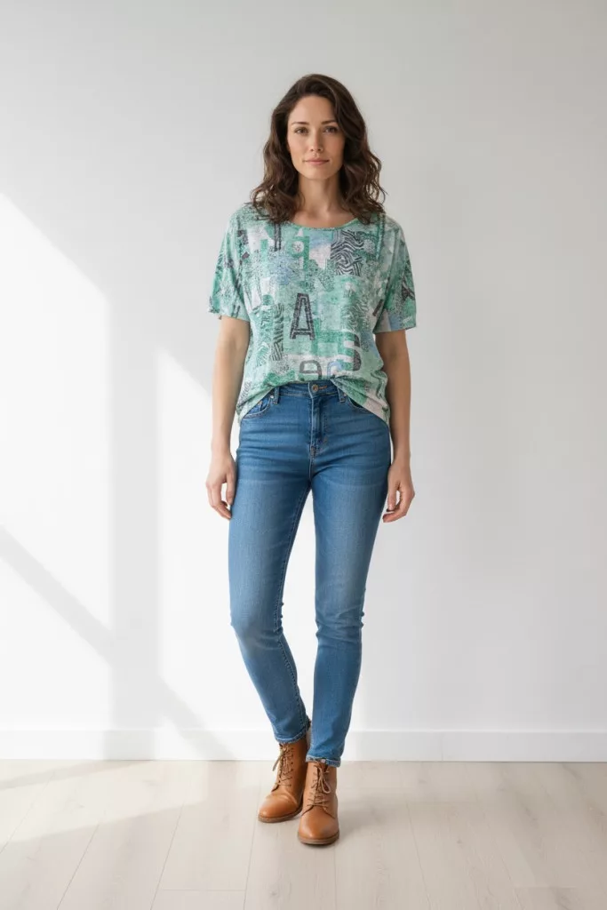 Navigazione türkiz betű mintás felső (hosszabb ujjal)
